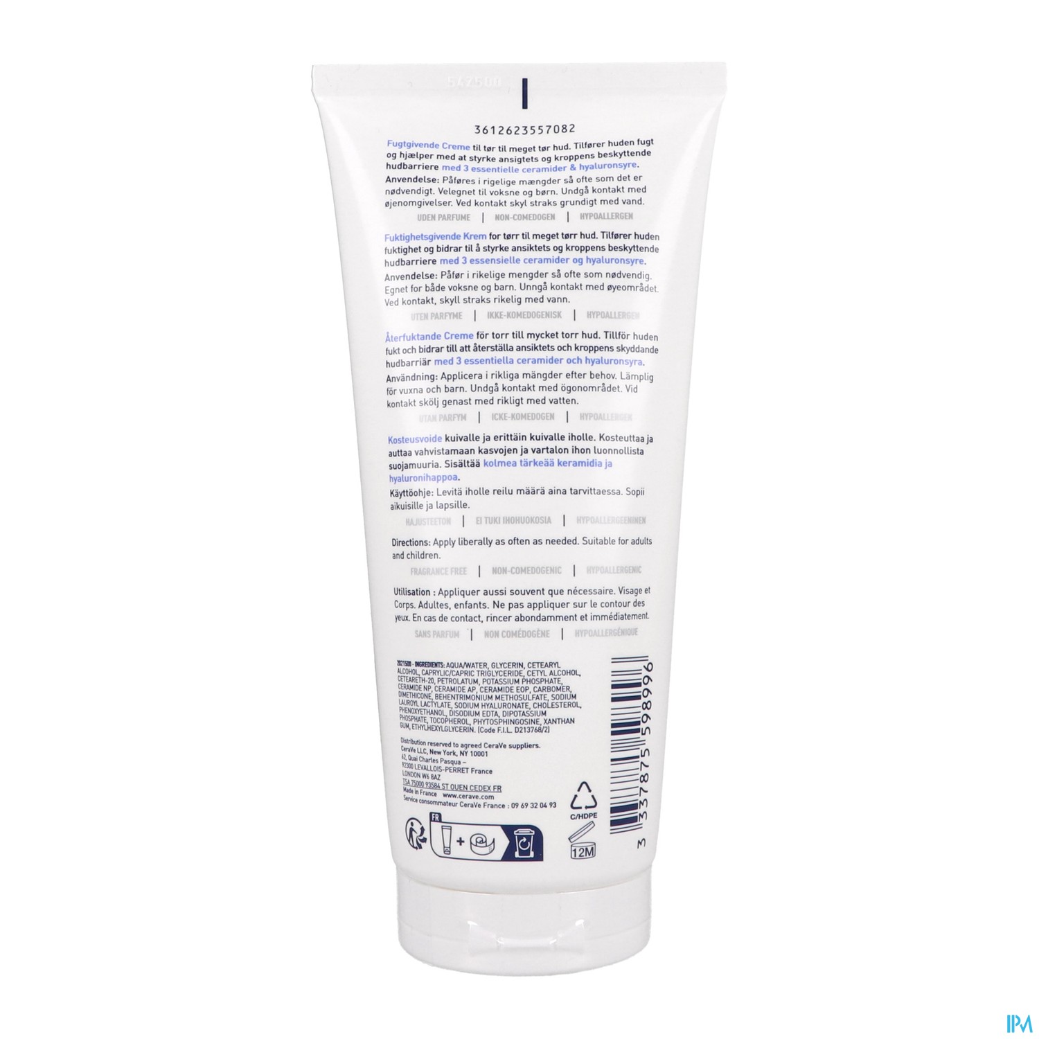 Die CeraVe Feuchtigkeitscreme versorgt trockene bis sehr trockene Haut intensiv mit Feuchtigkeit und unterstützt die Erneuerung der Hautschutzbarriere. Dabei kann die Feuchtigkeitspflege für trockene Haut sowohl für das Gesicht als auch für den ganzen Körper verwendet werden. Die reichhaltige, nicht fettende Formel mit 3 essenziellen Ceramiden und Hyaluron wirkt den ganzen Tag lang – schon ab der ersten Anwendung.\nWirkung und Pflege\nTrockene oder rissige Haut kann die Folge einer geschädigten Hautschutzbarriere sein, die durch einen Mangel an Ceramiden ausgelöst wird. Die Creme mit Ceramiden wirkt diesem Mangel entgegen und unterstützt so die Regeneration der Haut. Hyaluronsäure sorgt zusätzlich für intensive Feuchtigkeit. Dank patentierter MVE-Technologie erfolgt die Wirkstoff-Freisetzung über einen längeren Zeitraum: für ein bis zu 24 Stunden anhaltendes, geschmeidiges Hautgefühl.\nVorteile auf einen Blick\nFeuchtigkeitscreme für Gesicht und Körper bei trockener Haut\nBis zu 24 Stunden Feuchtigkeitsversorgung dank MVE-Technologie\nGeeignet für empfindliche Haut, sowie zu Neurodermitis und Allergien neigende Haut\nDie Creme für trockene Haut ist parfumfrei und nicht komedogen\nDas unabhängige ECARF-Institut hat bestätigt, dass die CeraVe Feuchtigkeitscreme besonders für die Bedürfnisse von Allergikern geeignet ist.