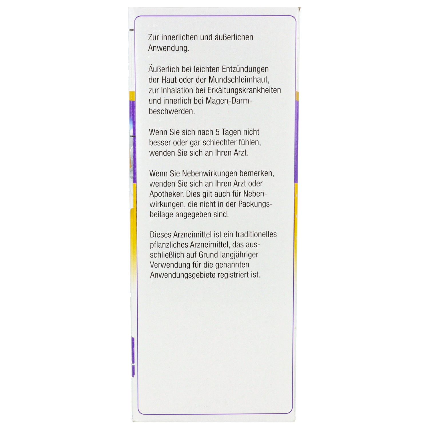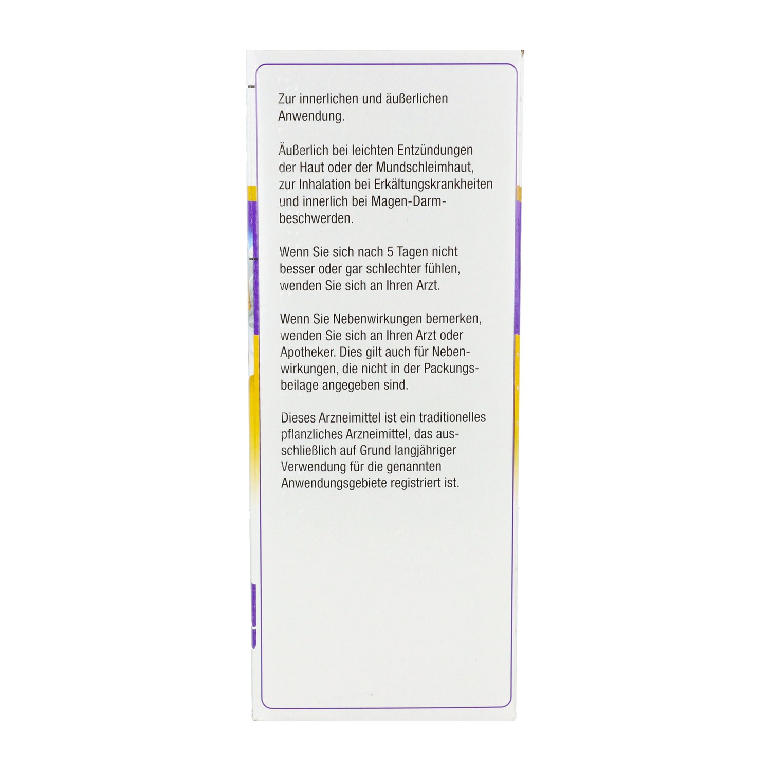 Dieses Arzneimittel ist ein traditionelles pflanzliches Arzneimittel, das ausschließlich auf Grund langjahriger Verwendung für die genannten Anwendungsgebiete registriert ist